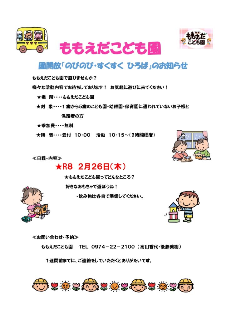 • 園解放「のびのび・すくすく ひろば」のお知らせ